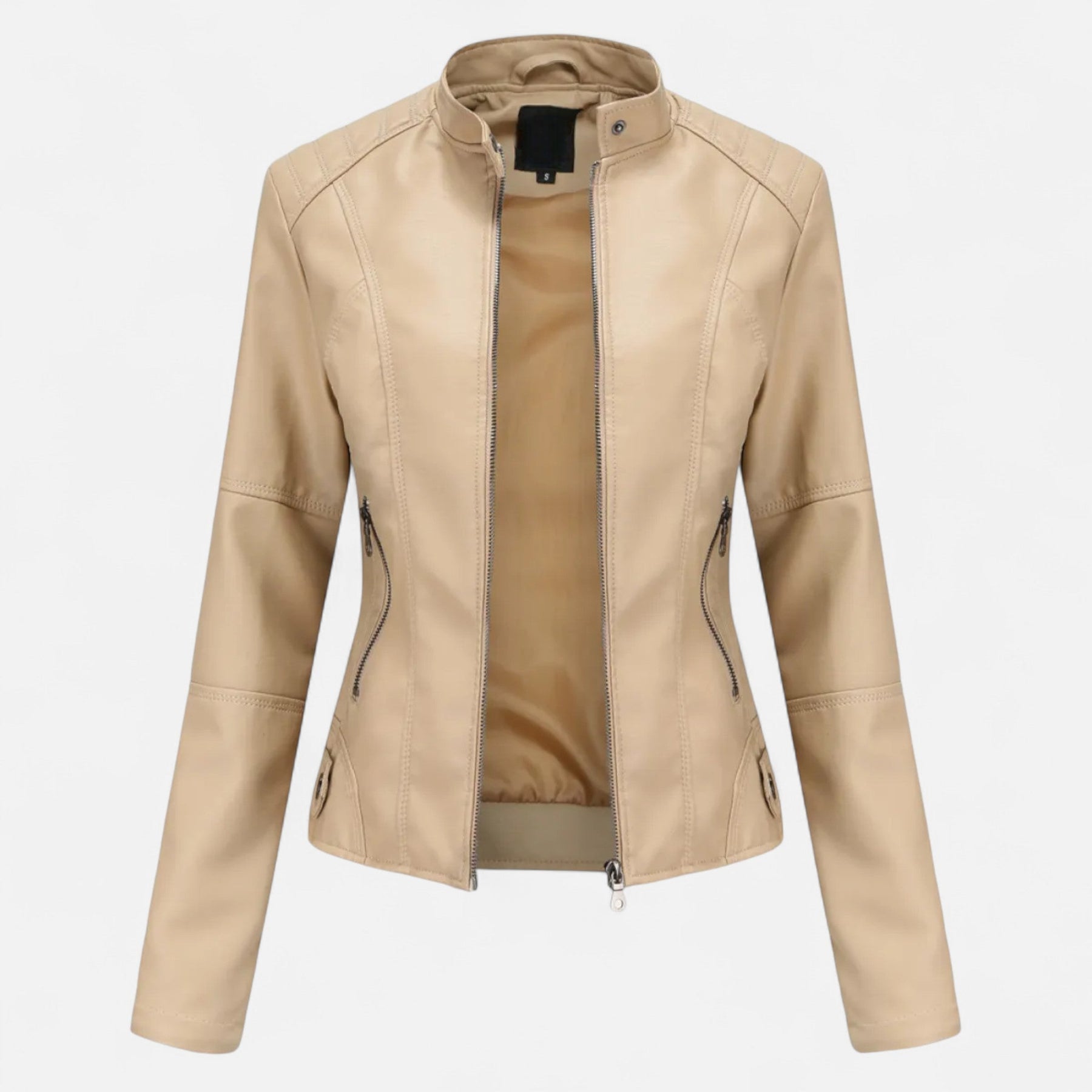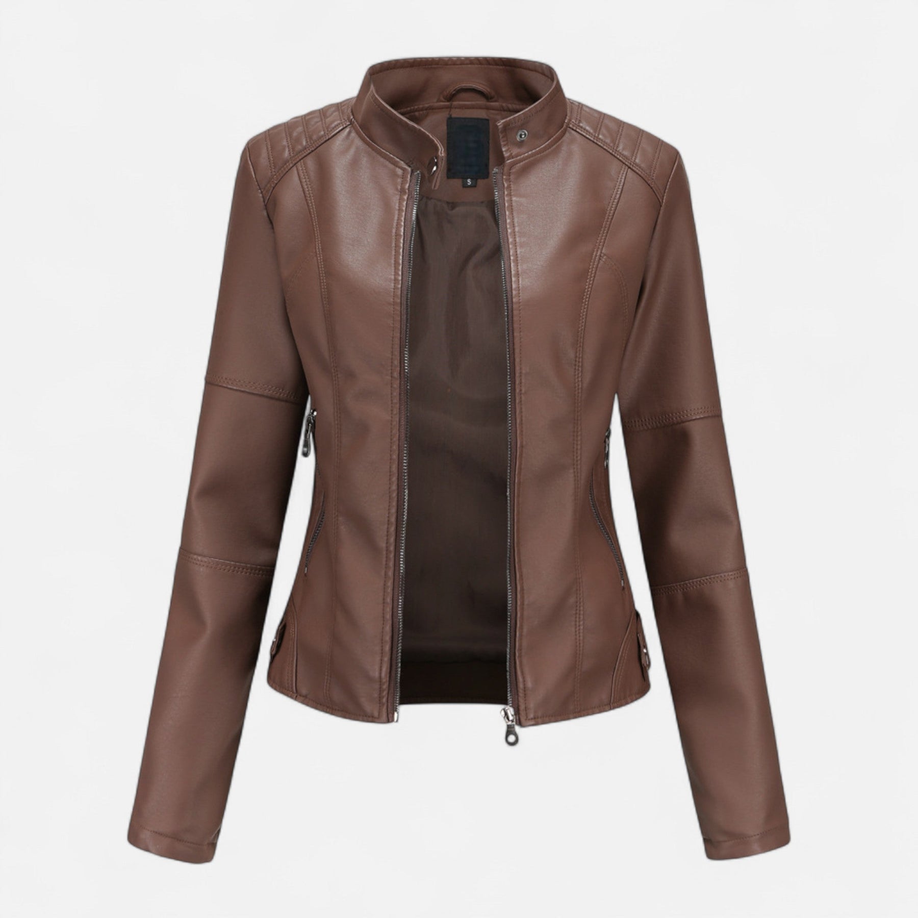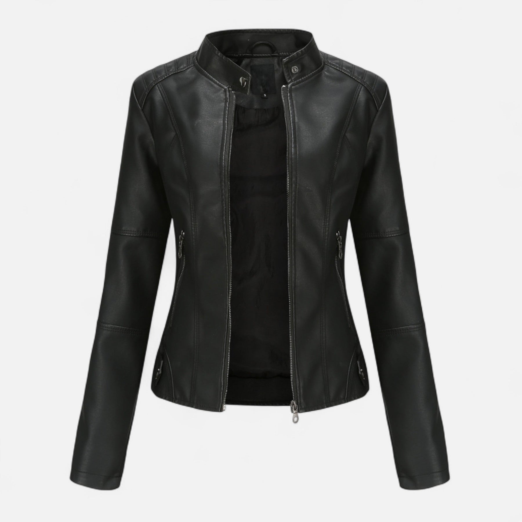 The Xenia leather jacket redefines modern femininity with timeless confidence. Designed with a refined stand-up collar and sculpted silhouette, it blends elegance with attitude — a piece that transitions effortlessly from daywear polish to evening allure. Crafted in premium PU imitation leather, it delivers the sleek, structured finish of true leather while maintaining lightness and flexibility for everyday ease.