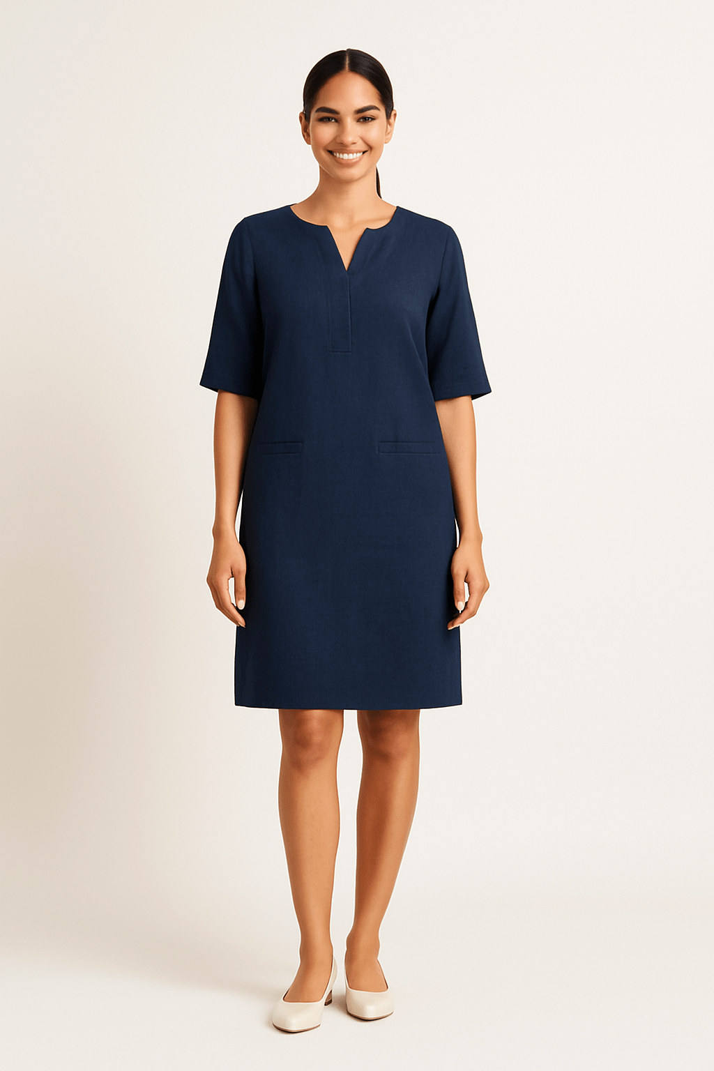 Omfavn letheden ved varmt vejr med Nova Linen-Style Shift Dress — den perfekte blanding af komfort, selvtillid og understated charme.